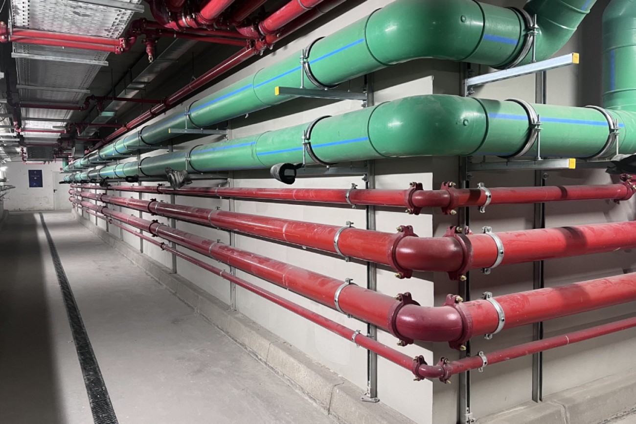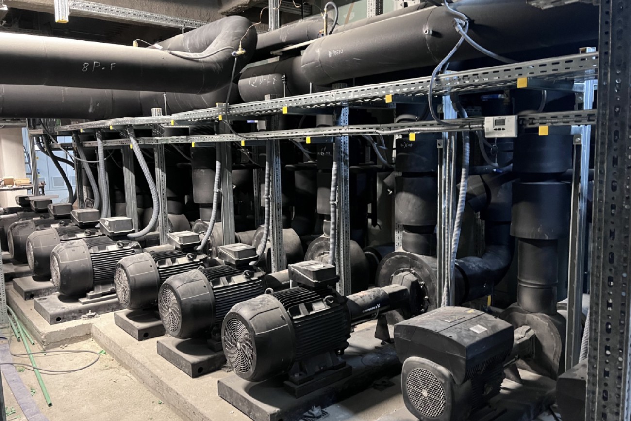 Realización de producción de climatización, sala de calor y frio, bombas, climatizadores, fancoils, torres, enfriadoras, Palcos, garajes y sala hipogeo (césped subterráneo)